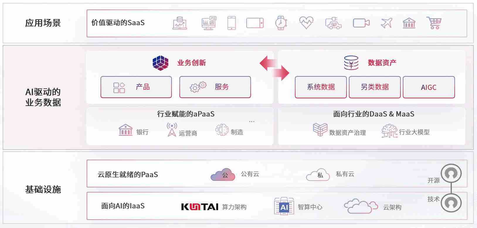 数字时代,,围绕企业数字化转型的关键要素,,NG电子游戏数码开创性的提出数云融合战略和技术体系框架,,,着力在云原生、、数字原生、、AI原生和信创产业上架构产品和服务能力,,,,为处在不同数字化转型阶段的快消零售、、、、汽车、、金融、、、医疗、、政企、、、教育、、、运营商等行业客户提供泛在的敏捷IT能力和融合的数据驱动能力,,,构建跨界融合创新的数字业务场景和新业务模式,,助力企业级客户建立面向未来的核心能力和竞争优势,,,全面推动社会的数字化、、智能化转型升级。。